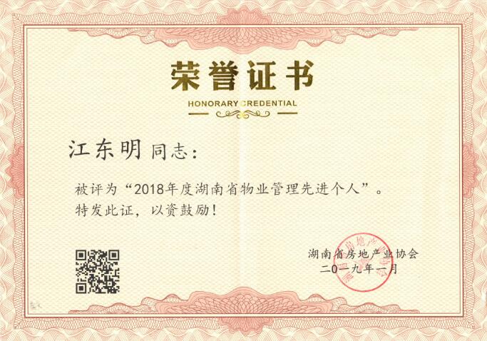 2018年度湖南省物業(yè)管理先進(jìn)個人