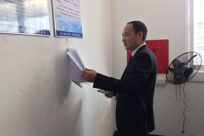 文虎龍先生檢查電梯機(jī)房維護(hù)記錄